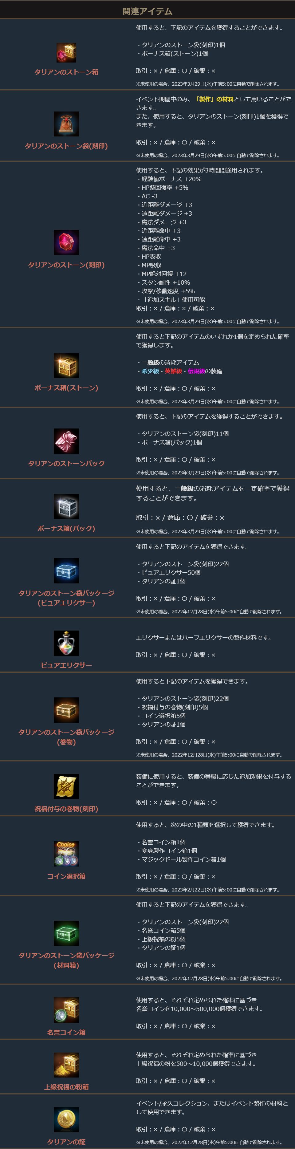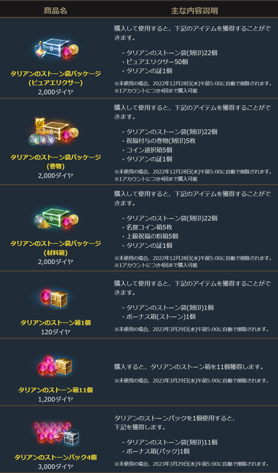 2022年11月23日より、ゲーム内ショップで販売を開始した「タリアンのストーン箱」についてご案内します。