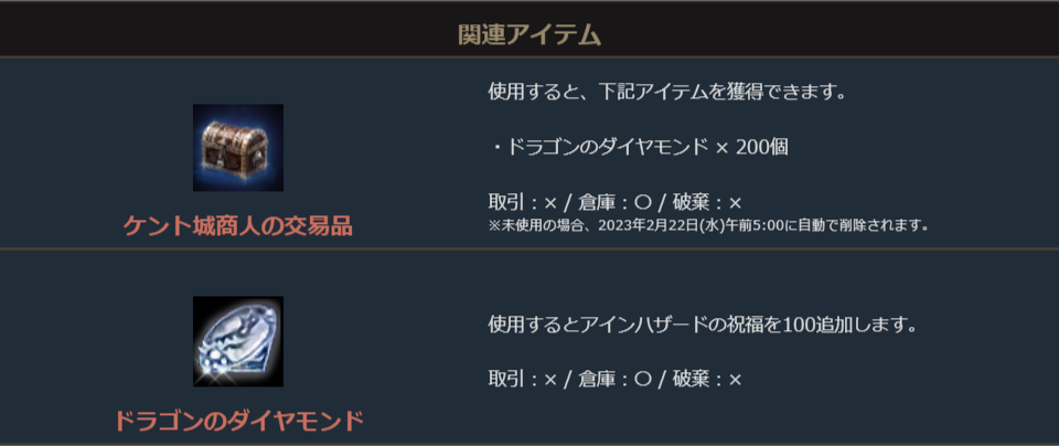 ※一部アイテムは未使用の場合、一定期間が経過すると自動で削除されます。詳しくは各アイテムの詳細をご確認ください。