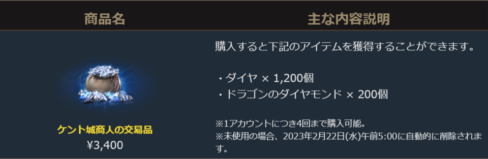 ダイヤに加え大量の「ドラゴンのダイヤモンド」が獲得できるお得なパッケージです。