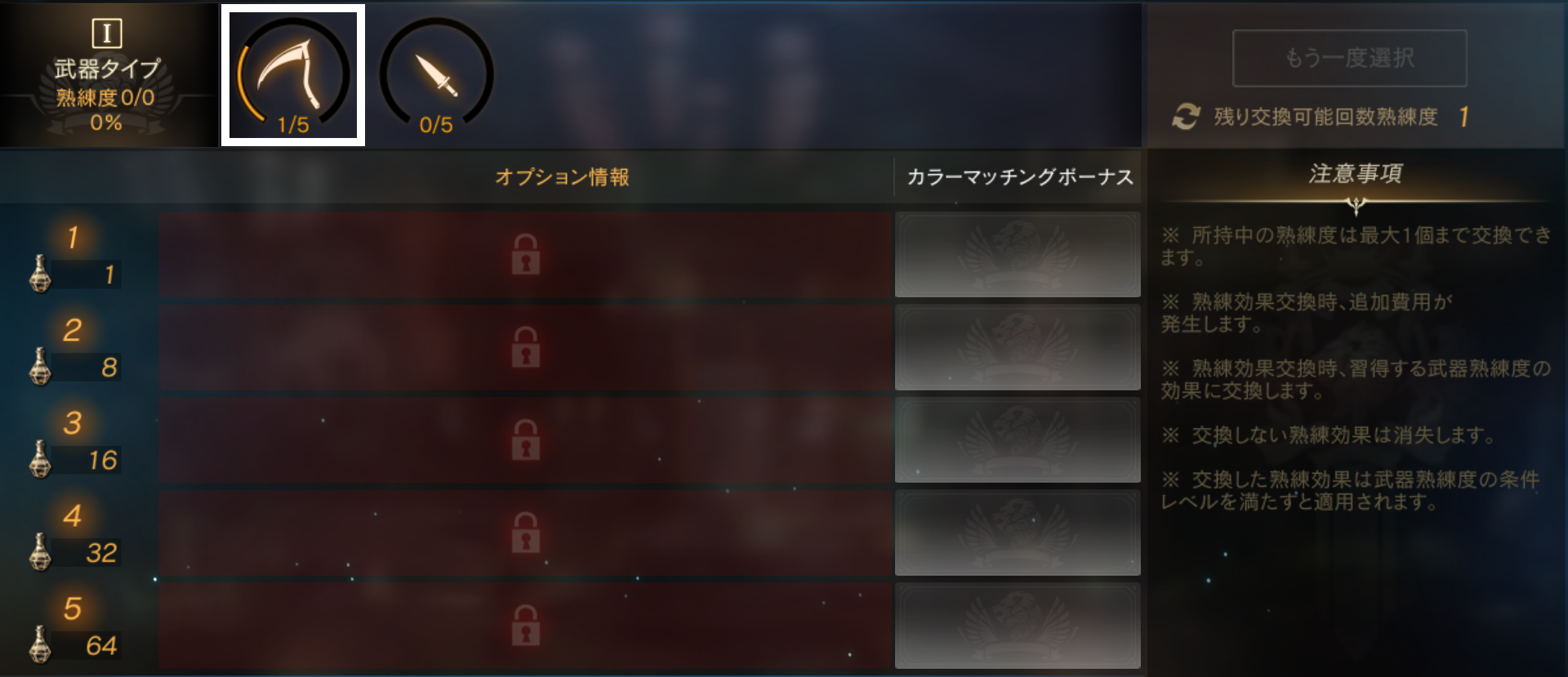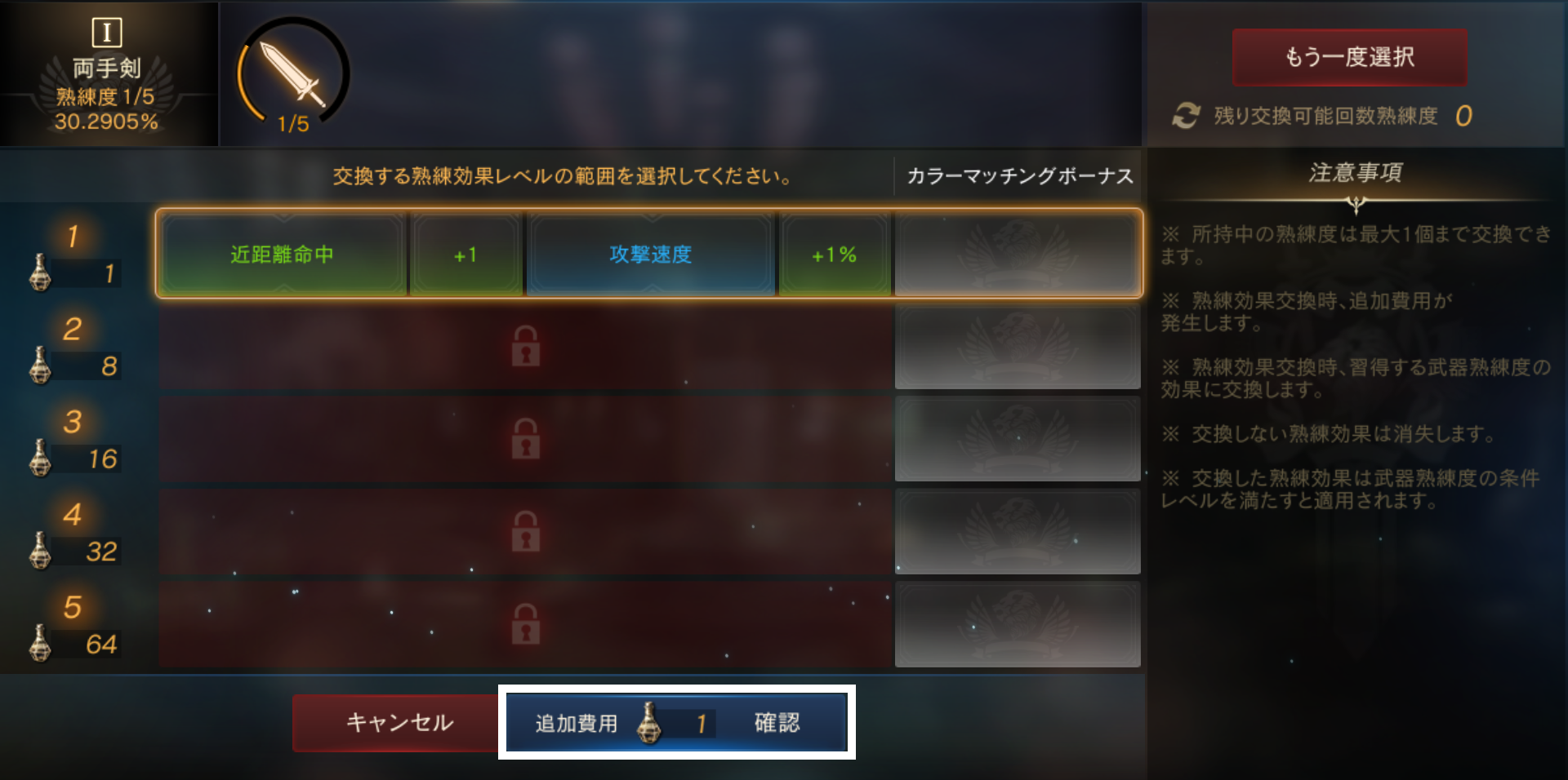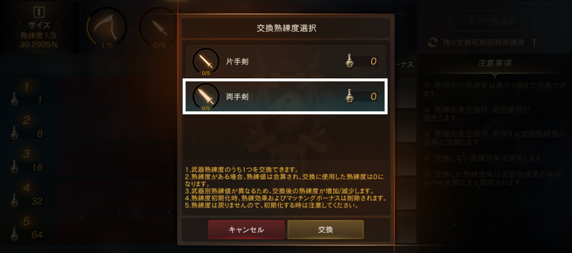 STEP.6 熟練度交換で、特定の武器熟練度を選択した職業に対応した熟練度に合算できます。