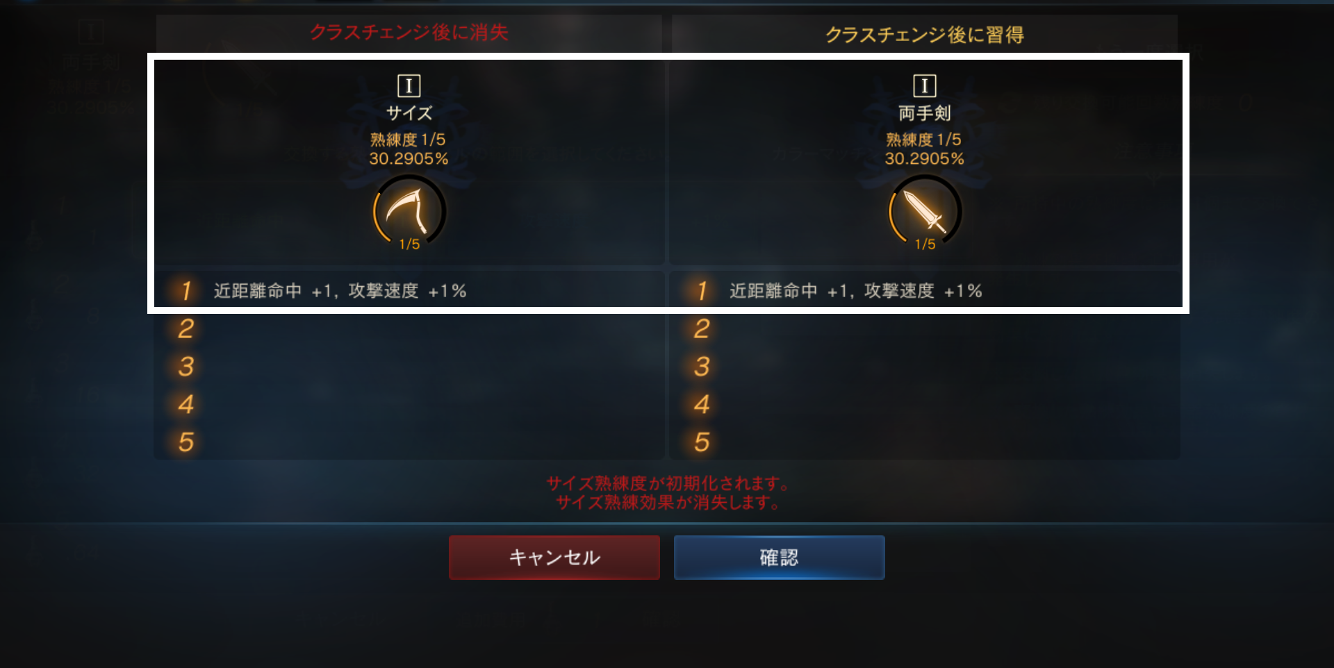 各種装備やアイテムとスキルの交換については、クラスチェンジ予定の職業のクラスチェンジよりゲーム内にてご確認をお願い致します。