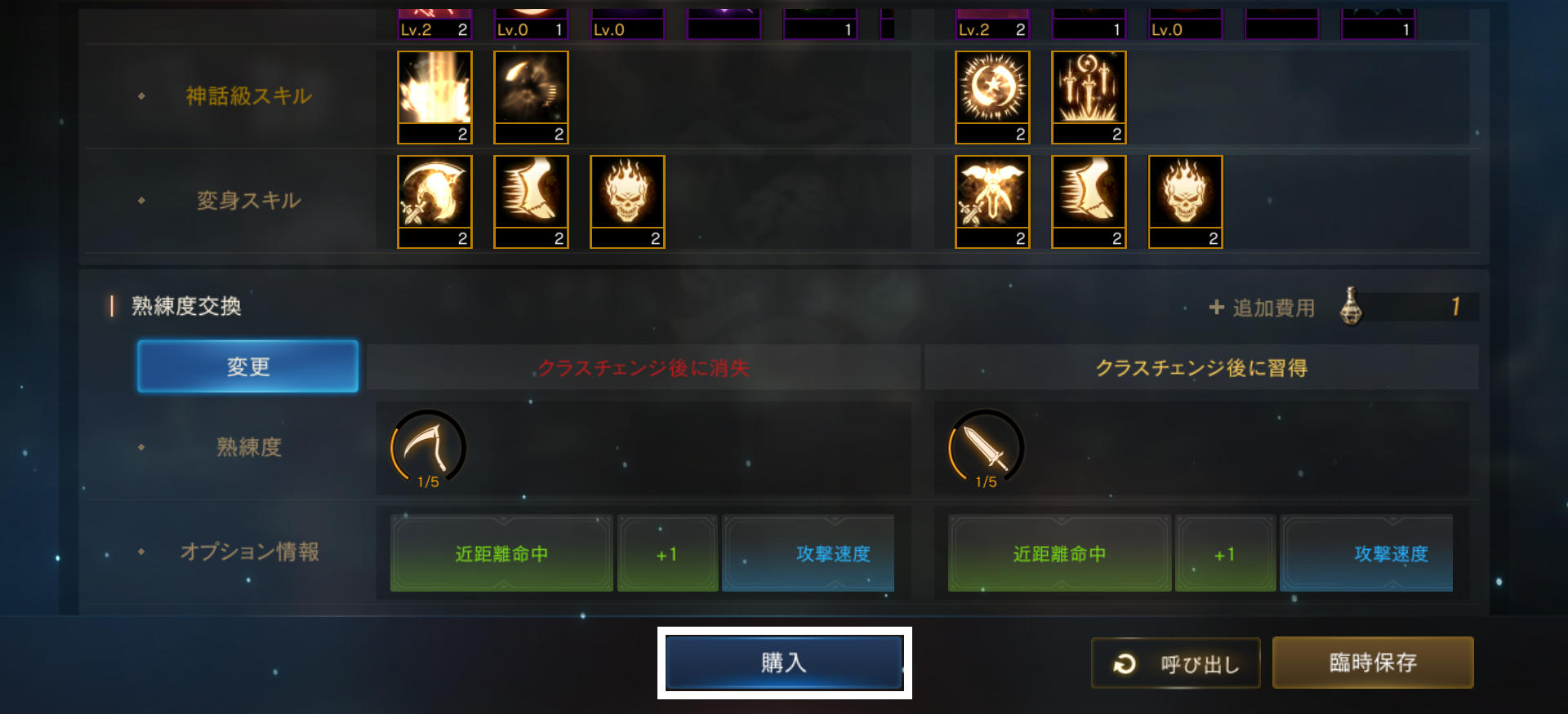 ※【スキルエンチャントで強化済み】のスキルの交換は、クラスチェンジ先の職業の【スキルエンチャントで強化が可能】なスキルに交換した場合のみ強化値が引き継がれます。