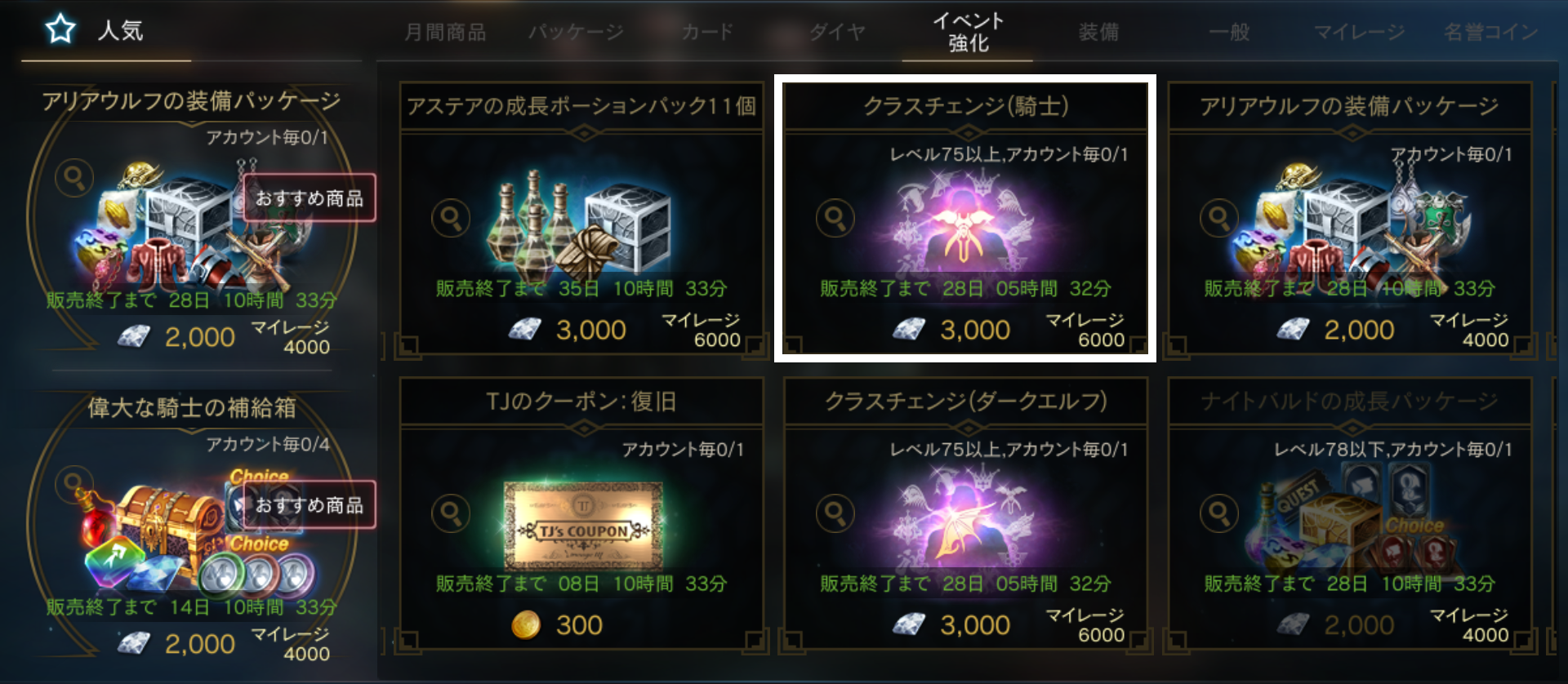 今回のクラスチェンジキャンペーンは「騎士」と「ダークエルフ」へのクラスチェンジが可能になります。