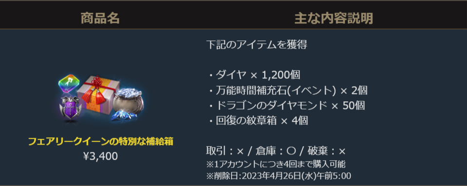 2023年4月5日より販売を開始しました「フェアリークイーンの特別な補給箱」のご案内を申し上げます。