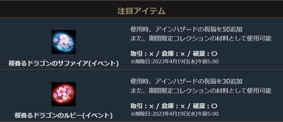 ※バフ効果は残り時間に関わらず、2023年4月19日(水)5:00に削除されます。