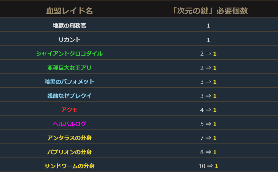 イベント期間中「血盟レベル5」から、全ての血盟レイドに挑戦ができ血盟レイドのポータル作成に必要な「次元の鍵」が1個になります。