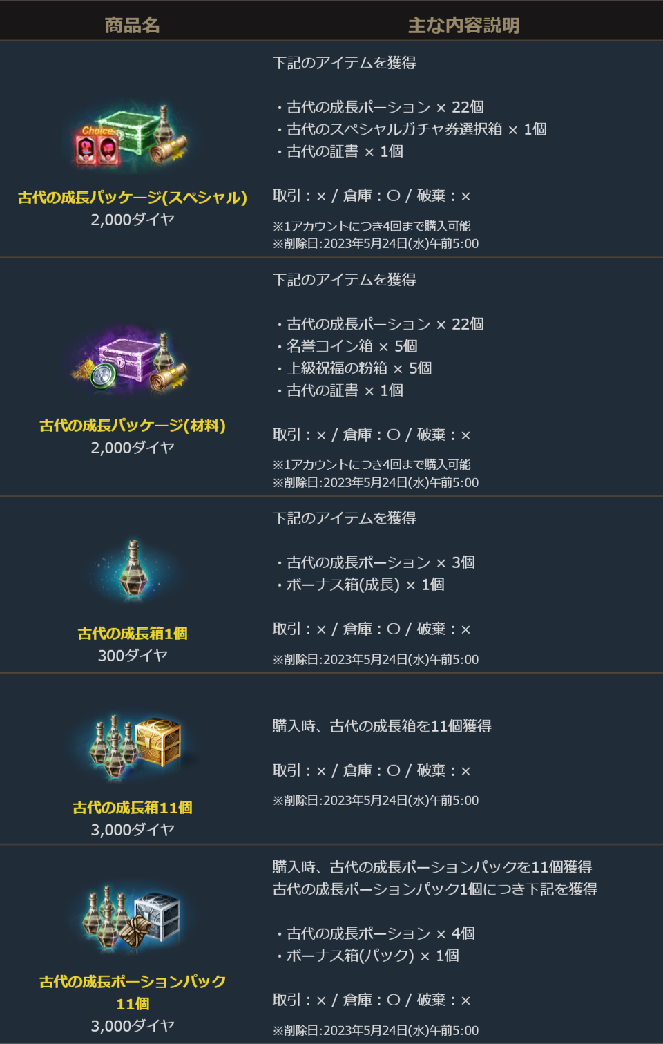 2023年4月26日より、ゲーム内ショップで販売を開始した「古代の成長箱」についてご案内します。