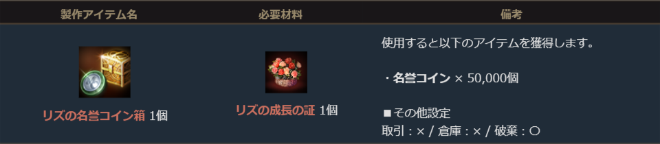 ※アイテムの詳細説明はゲーム内TIPよりご確認ください。