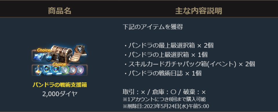 2023年5月17日より販売を開始しました「パンドラの戦術支援箱」のご案内を申し上げます。