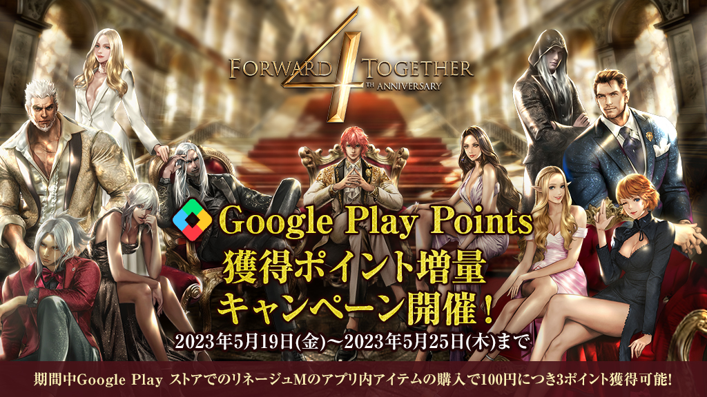 Google Play ストアにてリネージュMのアプリ内アイテムを購入すると獲得できるPlay ポイントが増量するキャンペーン「リネージュM Google Play Points増量キャンペーン」についてお知らせいたします。