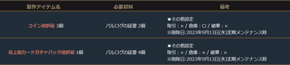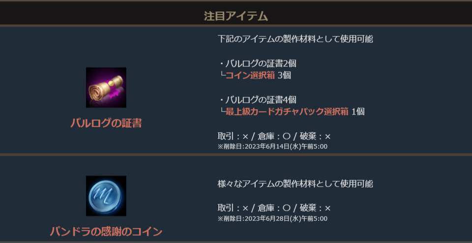※一部アイテムは未使用の場合、一定期間が経過すると自動で削除されます。詳しくは各アイテムの詳細をご確認ください。