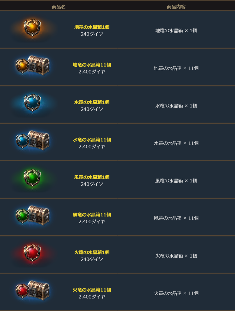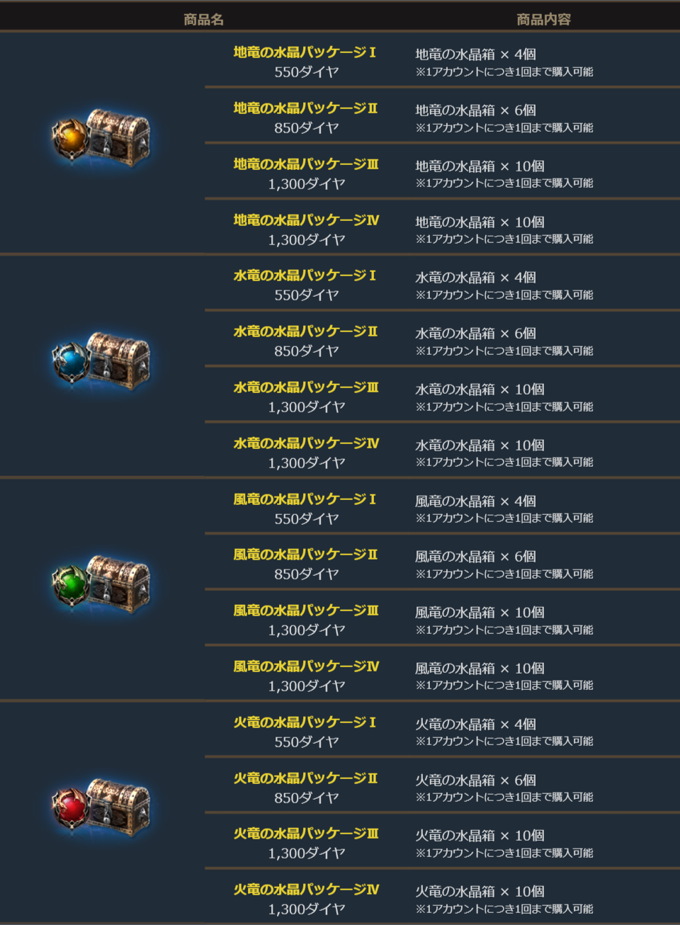 2023年5月24日より販売を開始しました「地竜の水晶」と「水竜の水晶」、「風竜の水晶」、「火竜の水晶」の期間特別パッケージをご案内します。