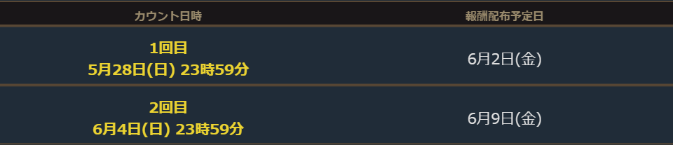 ・下記のカウント日時の時点で、達成条件を満たしていない場合対象外となりますのでご注意ください。
