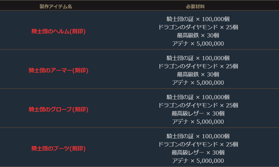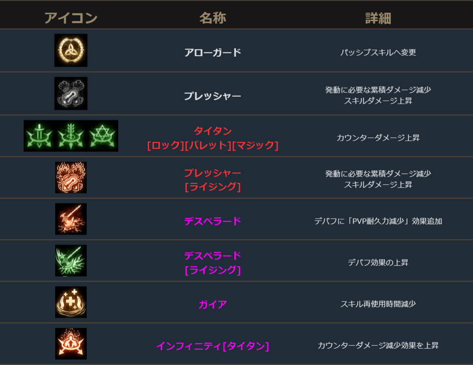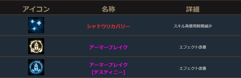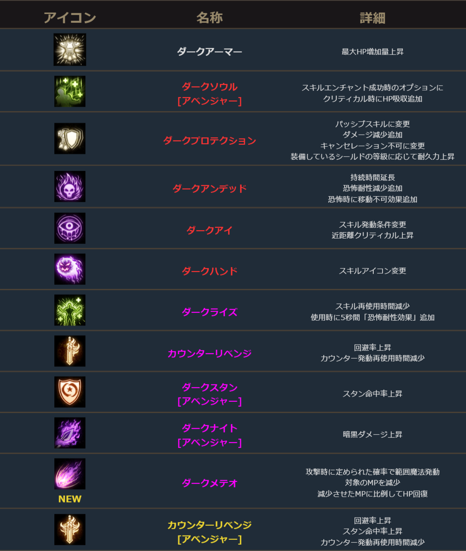 暗黒騎士は、新規スキル1種追加、既存スキル11種変更。