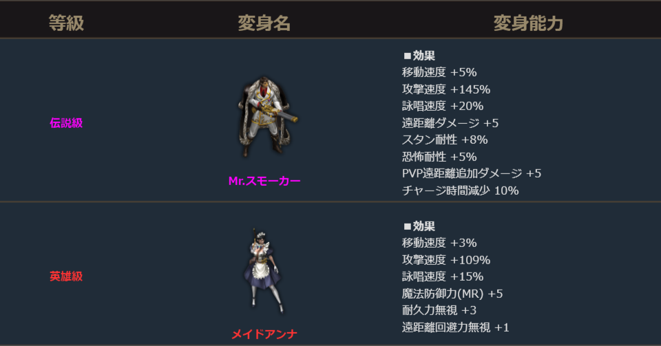 ダークエルフは、既存スキル3種変更。