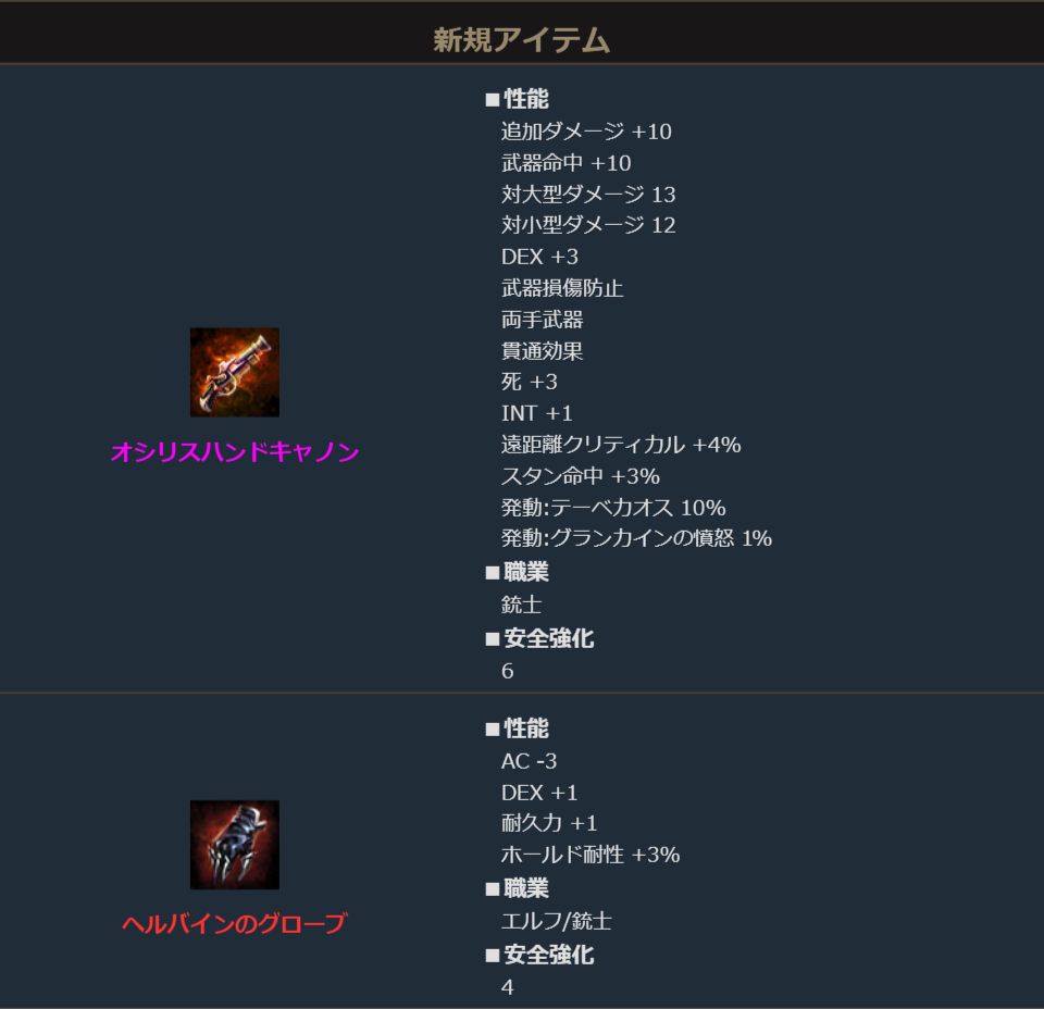 下記の新規装備を追加しました。
