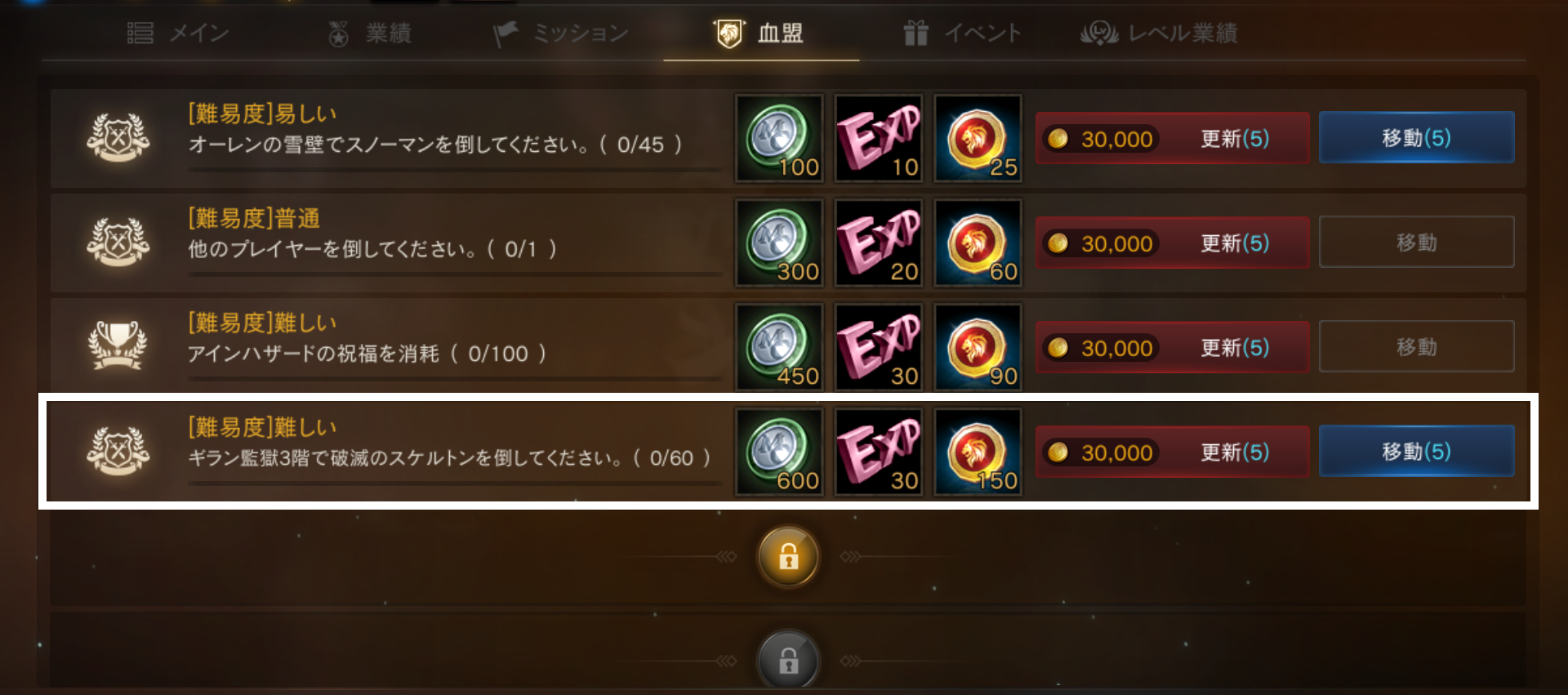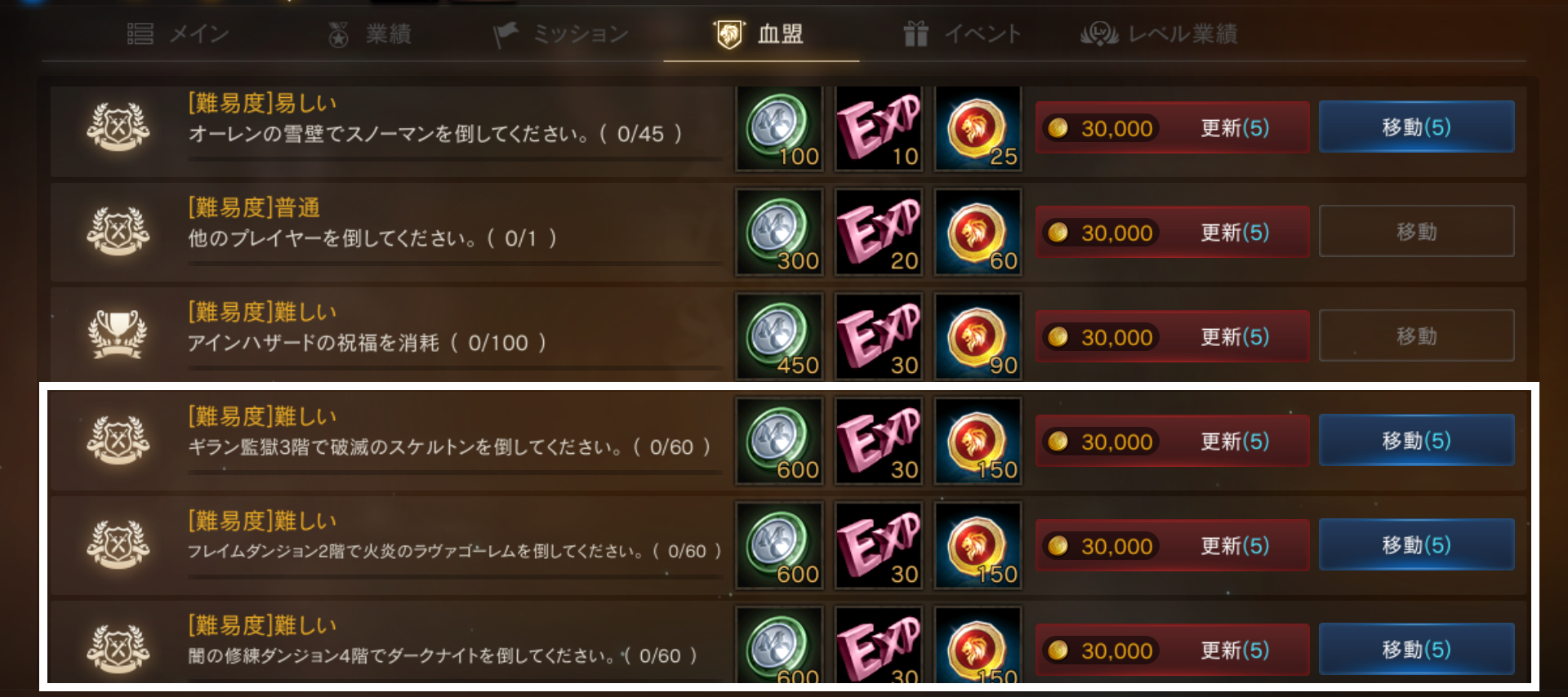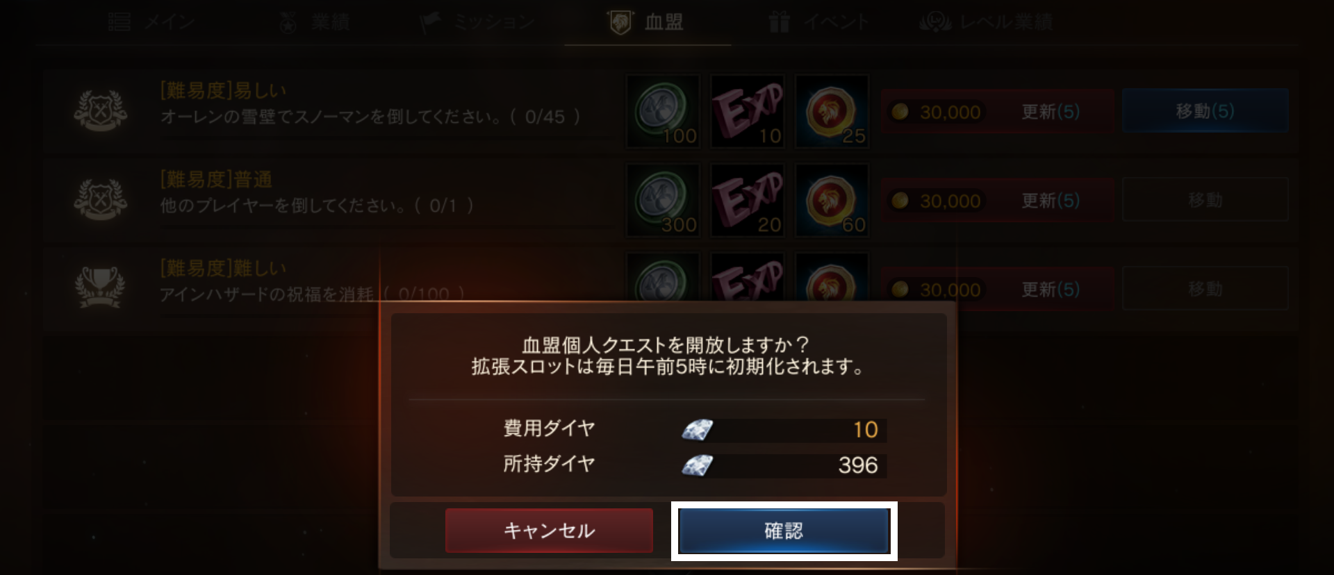 「ゲーム内メニュー>クエスト>ミッション」より確認が可能な「日間」「週間」「