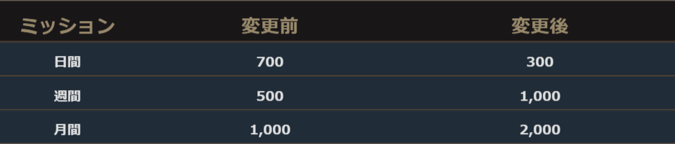 また、全てのミッション達成時に受取が可能な「アインハザードの祝福」の数量が変更されました。