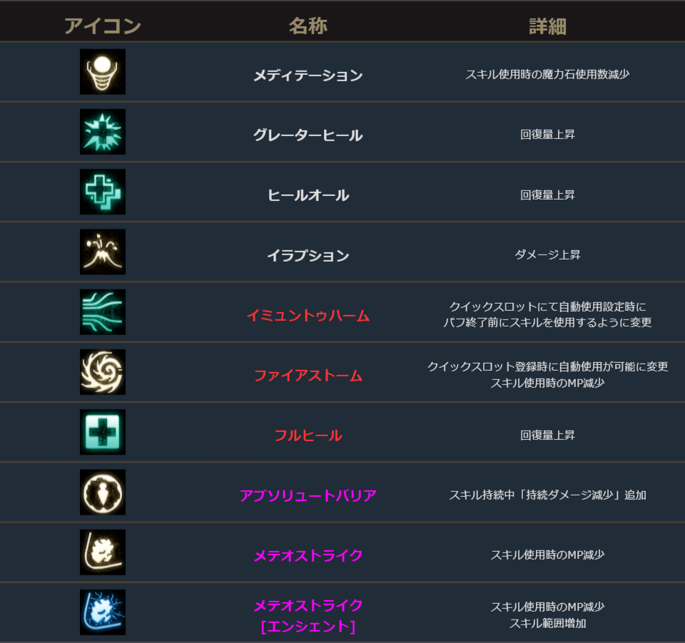魔術師は、既存スキル10種変更。