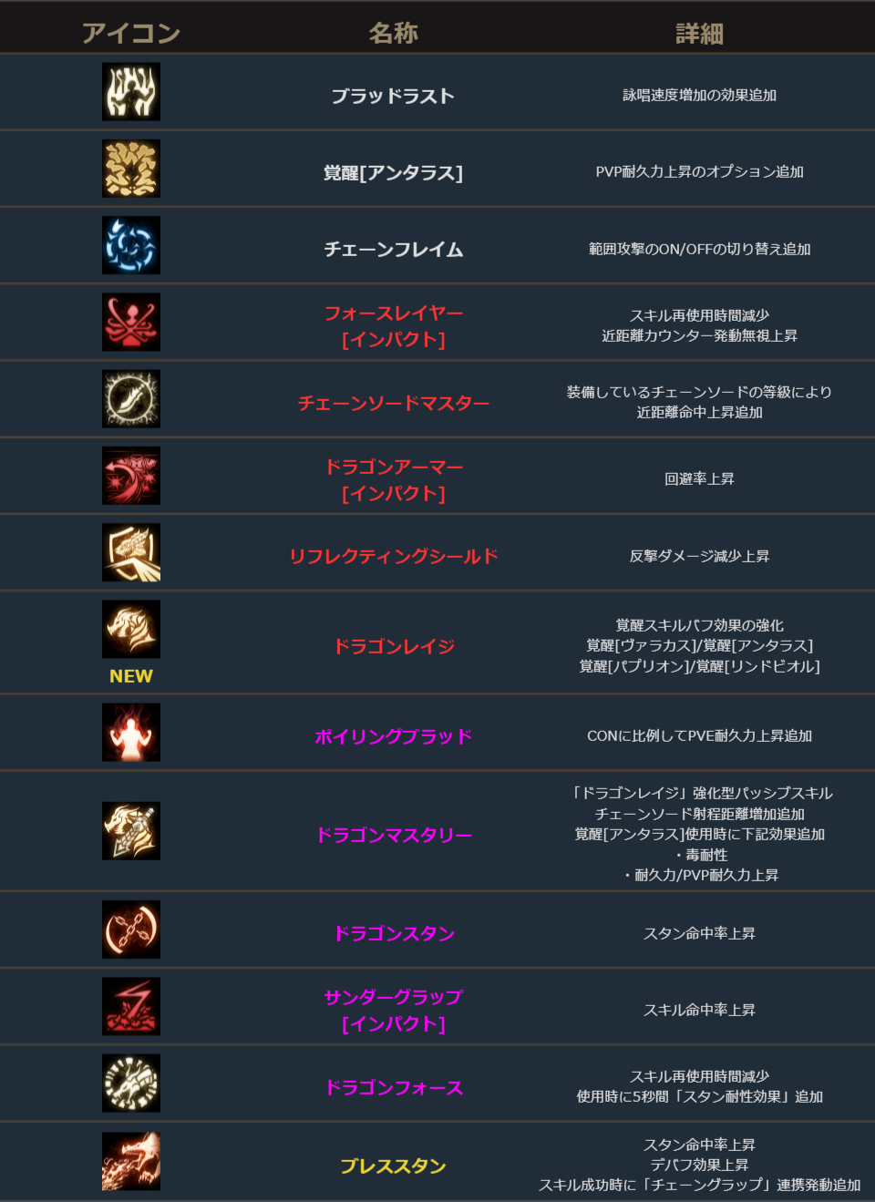 竜闘士は、新規スキル1種追加、既存スキル13種変更。