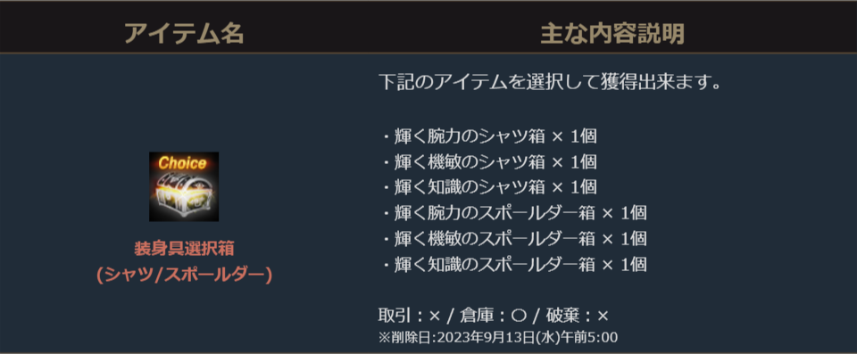 ※一部アイテムは未使用の場合、一定期間が経過すると自動で削除されます。詳しくは各アイテムの詳細をご確認ください。