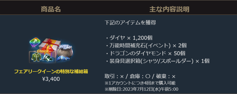 2023年6月28日より販売を開始しました「フェアリークイーンの特別な補給箱」のご案内を申し上げます。