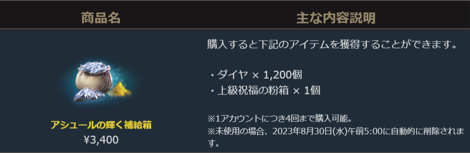 2023年7月5日より販売を開始しました「アシュールの輝く補給箱」のご案内を申し上げます。