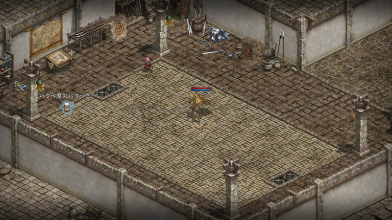 入場したエリアから画面の下へ移動すると広場になっていますので、プレイヤー同士の交流や力比べ等にご利用ください。