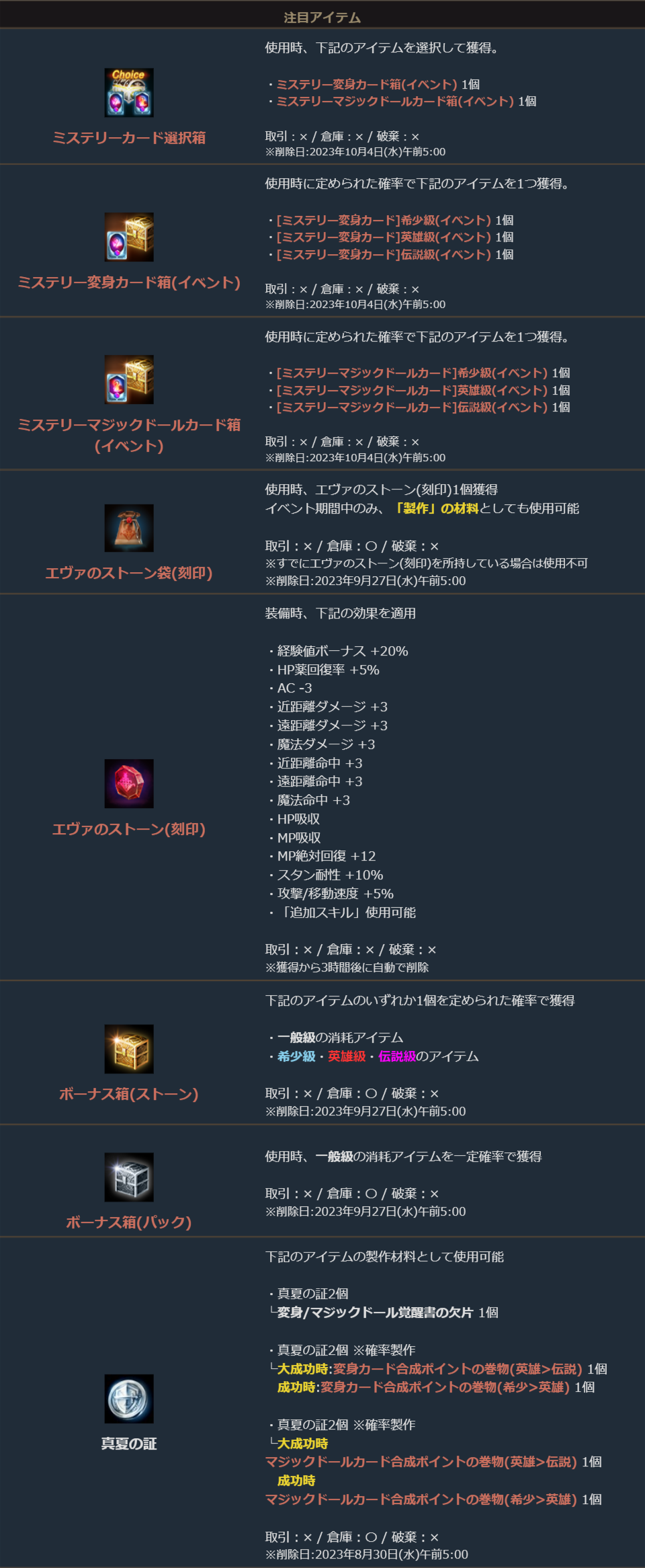 ※一部アイテムは未使用の場合、一定期間が経過すると自動で削除されます。詳しくは各アイテムの詳細をご確認ください。