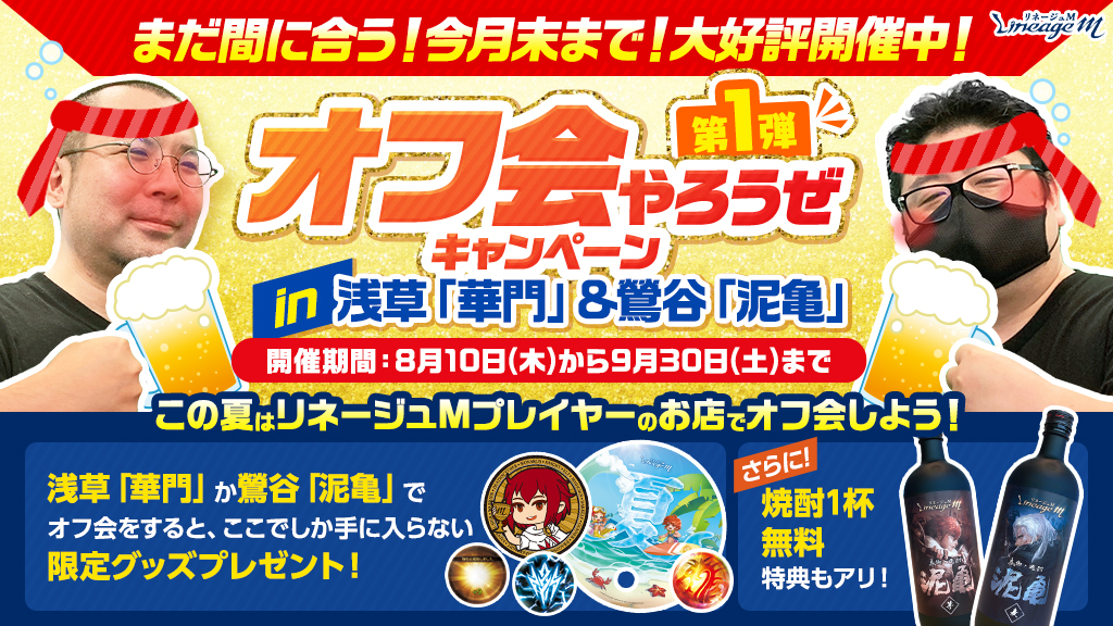 「オフ会やろうぜキャンペーン」とは、リネージュMプレイヤーが働いているお店を会場として、リネージュMのオフ会開催を促進・応援するキャンペーンです。
