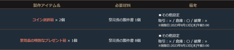 更に付属の「祭司長の製作書」を材料に「コイン選択箱」や英雄級の[変身/マジックドールカード]が獲得出来る「祭司長の特別なプレゼント箱」の製作も可能です。