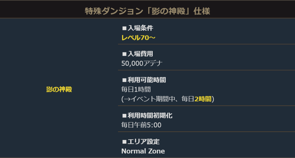 「影の神殿」はレベル70~で利用可能な特殊ダンジョンです。