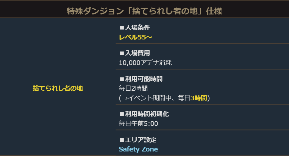 「捨てられし者の地」はレベル55~で利用可能な特殊ダンジョンです。