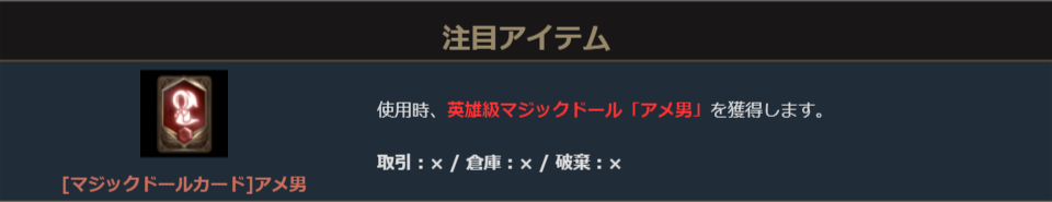 また、35日目の出席報酬には英雄級マジックドールカード「アメ男」が獲得可能です。