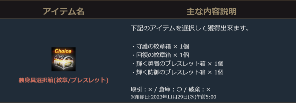 ※一部アイテムは未使用の場合、一定期間が経過すると自動で削除されます。詳しくは各アイテムの詳細をご確認ください。