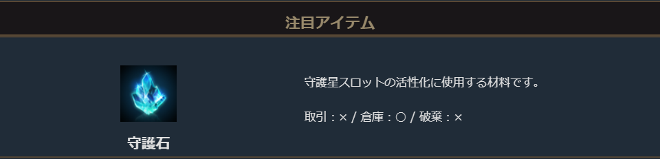 ※アイテムの詳細説明はゲーム内TIPよりご確認ください。