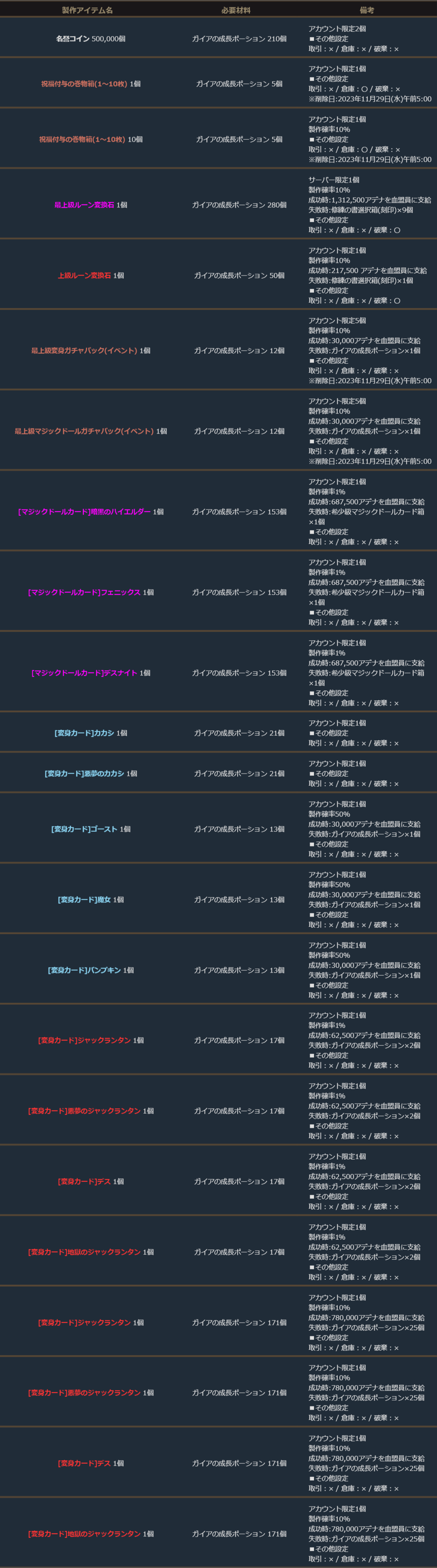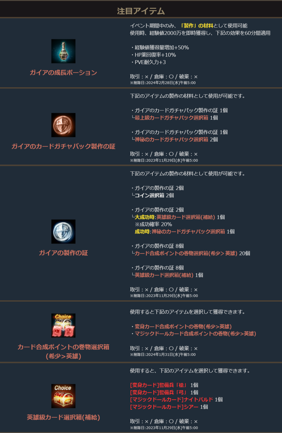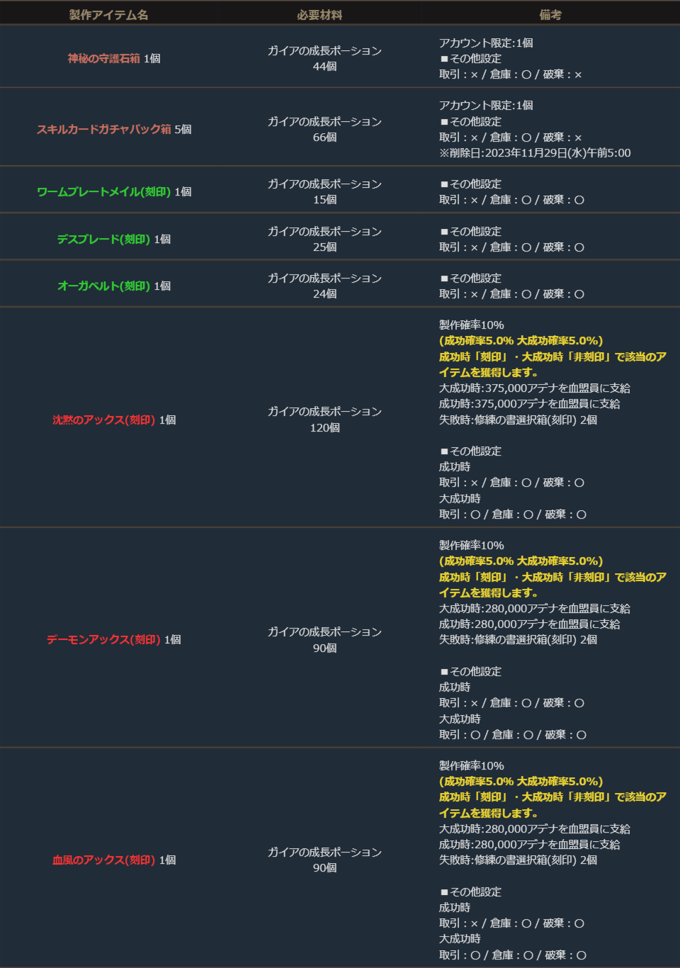 ※アイテムの詳細説明はゲーム内TIPよりご確認ください。