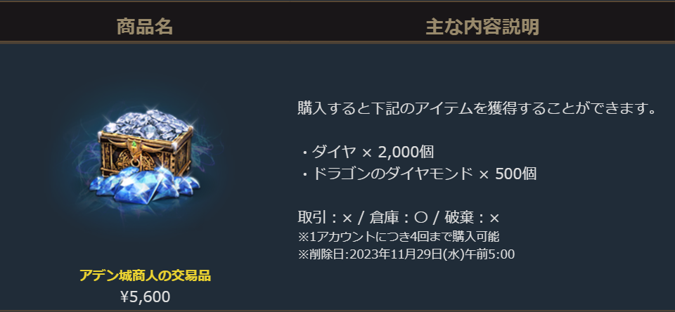ダイヤに加えドラゴンのダイヤモンドが500個獲得できるお得なパッケージです。