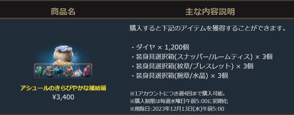 2023年11月15日より販売を開始しました「アシュールのきらびやかな補給箱」のご案内を申し上げます。