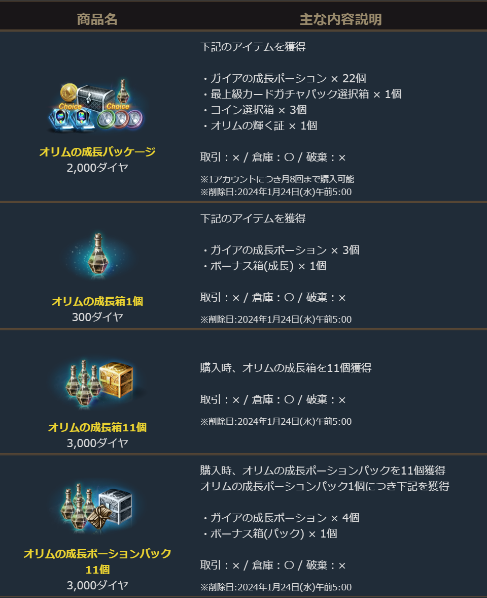 2023年12月27日より、ゲーム内ショップで販売を開始しました「オリムの成長箱」についてご案内します。