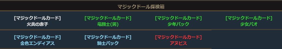 付属の「スペシャル製作証書」は定められた確率で貴重なマジックドールカードが入手可能な「マジックドール探検箱」等の製作が可能です。