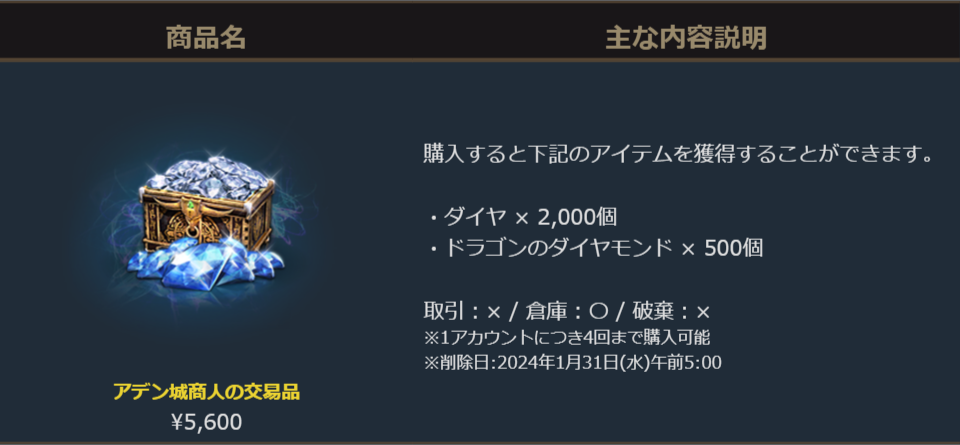 ダイヤに加えドラゴンのダイヤモンドが500個獲得できるお得なパッケージです。