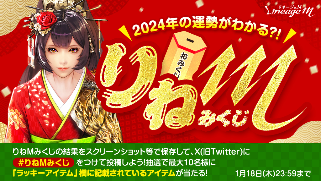 当選されたお客様には、リネージュM公式X(@LineageM_JP)よりDMにて当選通知と賞品の受け取り方法をご連絡いたします。