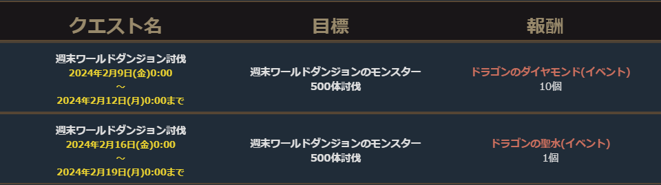 2024年2月7日開始のイベント「週末ワールドダンジョン利用時間延長」についてご案内申し上げます。