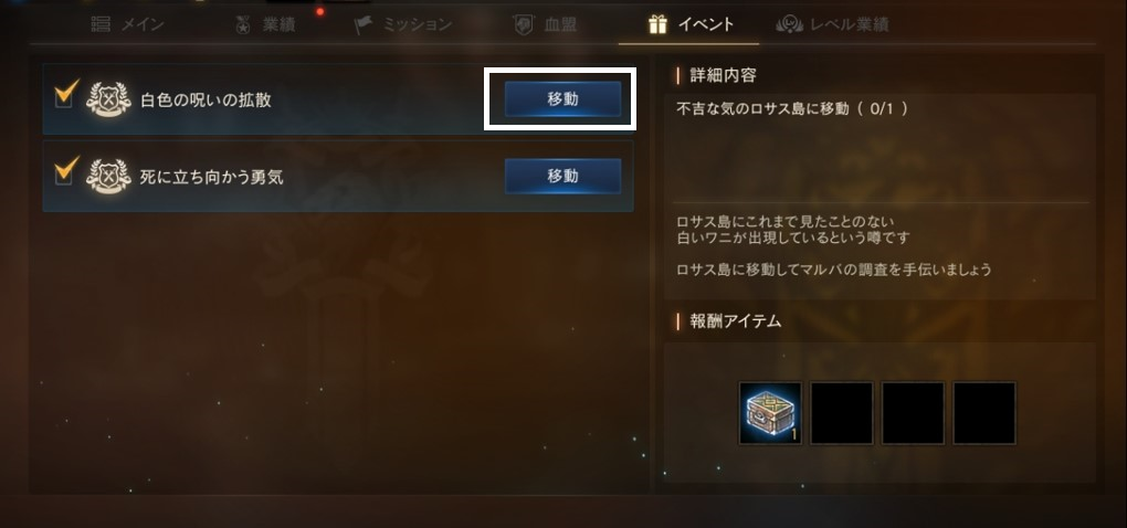 イベントNPC「マルバ」からアルビノ盆地に関するストーリーが語られるとともに、「不吉な気のロサス島」に出現する「アルビノワニ」を討伐すると「欲望の成長ポーション(イベント)」が獲得できます。