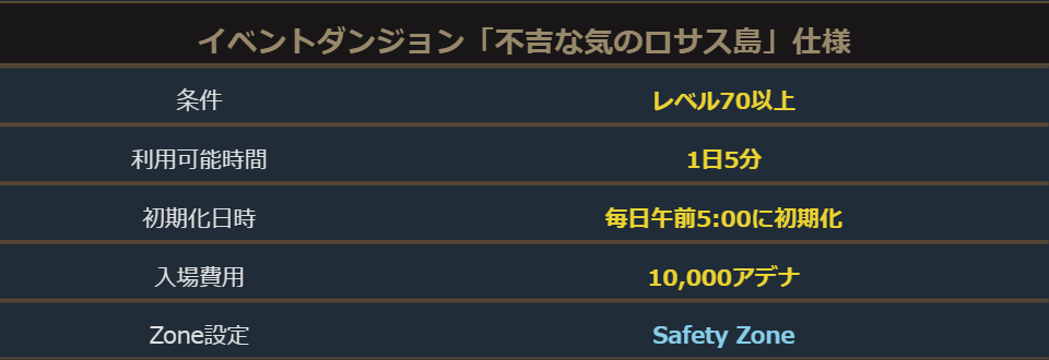 イベントダンジョン「不吉な気のロサス島」の入場条件は以下となります。