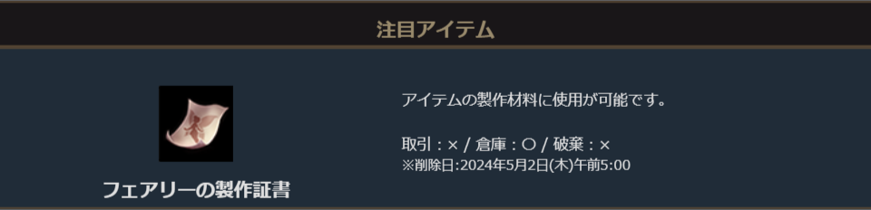 ※アイテムの詳細説明はゲーム内TIPよりご確認ください。