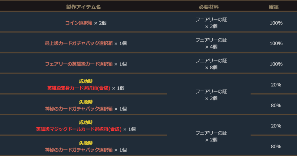 更に付属の「フェアリーの証」で英雄級カードの製作にチャレンジする事ができます。