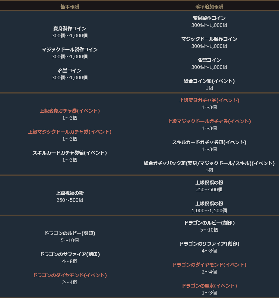 宝箱からは「上級変身ガチャ券(イベント)」や「上級祝福の粉」等を獲得できるチャンスとなりますので、是非ご参加ください!
