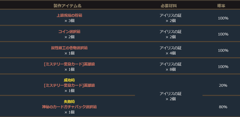 ※アイテムの詳細説明はゲーム内TIPよりご確認ください。